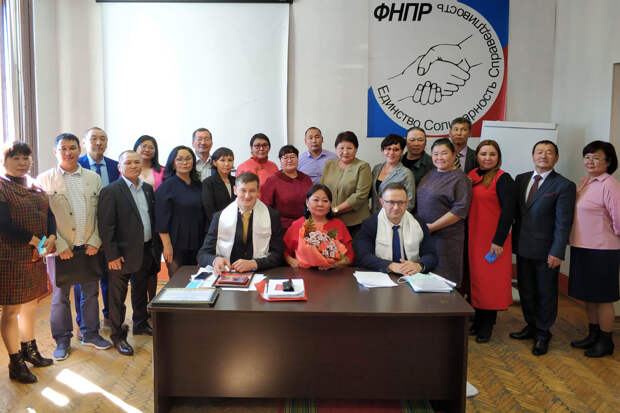 ДЕТАЛИ ИЗ КУЛУАРОВ Кстати, средний возраст жителей республики - меньше 30 лет. Так что на молодежь просто нельзя не делать ставку. Это все понимают - и делают. В кулуарах конференции удалось пообщаться с председателем организации профсоюза работников образования г. Кызыла Юлией Разаевой. Одно из первых дел нового председателя (возглавляет горком всего полтора года) - создание молодежного совета. Она сознательно ушла от “совета молодых педагогов”, чтобы привлечь всю молодежь из образовательных организаций. Кроме того, за время работы в качестве председателя Юлия Разаева привлекла новые первички, так что неохваченными в городе осталось пока только три школы и один садик - но и с ними работа ведется. Много интересного сделано и делается энергичным лидером, и планов громадье. Взять хотя бы информационно-пропагандистскую работу: в соцсетях открыты группы, делается сайт организации, проводится конкурс на лучшие видеоролики о профсоюзе… Осталось подписаться на профсоюзную газету - но и это, видимо, на подходе. НЕ МЕЛОЧИ ЖИЗНИ В кабинете профсоюзного лидера Тывы - флаг ФНПР и фото в этностиле, портрет Михаила Шмакова и голова Будды. Сама Галина Сюрюн - человек в республике известный. Заслуженная артистка Тывы, исполнительница эстрадных и национальных песен. Кроме всего профобъединения она возглавляет республиканскую организацию профсоюза работников культуры. Но в “хозяйстве” - не одни только деятели культуры. Профобъединение старается для всех членов профсоюзов. А задачи надотраслевого уровня решаются через взаимодействие с руководством республики. За день перед отчетно-выборной конференцией Галина Сюрюн и Александр Шершуков встретились с заместителем председателя правительства республики Аясом Оюном. Тот заверил, что руководство региона придает профсоюзной деятельности большое значение. Раз основная задача профсоюзов - защита трудовых прав, а трудовые права - часть конституционных прав, гарантом коих в республике выступает ее глава, то и выходит, что дело и задачи общие, и решать их надо вместе. Такую логическую цепочку выстроил Аяс Оюн. Аяс Геннадьевич попенял Галине Алексеевне, что недостаточно активно профсоюзы идут на взаимодействие с правительством. Просил регулярно информировать о работе федерации профсоюзов в сфере трудовых отношений. Заинтересовался представитель правительства и центральной профсоюзной газетой “Солидарность”. Предложил информационное взаимодействие - в русле тематики газеты, конечно. Сказал даже, что подпишется. - Главное, чтобы профсоюзы подписывались, - заметил на это главред “Солидарности” Александр Шершуков. И то: в настоящий момент во всю Тыву по подписке поступают только два экземпляра газеты: один - через почту и один - в электронном виде. Уже на конференции, перед лицом делегатов представитель правительства республики вновь обратился к профсоюзам с призывом о сотрудничестве. - Нет таких вопросов, которые мы с вами вместе не смогли бы решить, - сказал Аяс Оюн. И еще предложил без стеснения информировать правительство о случаях нарушений в сфере трудовых отношений. И даже посоветовал поднимать статус членов профсоюзов. - То, что выступил зампред правительства и публично зафиксировал готовность органов власти к сотрудничеству, дает профсоюзам карты в руки, - считает Александр Шер